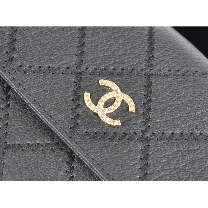 2014 Chanel Matelasse Bi-Fold wallets Original Elephant pattern Leather C9556 Black