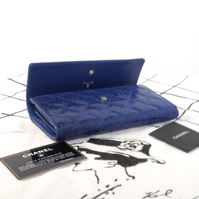 2014 Chanel Matelasse Bi-Fold wallets Original Leather A68608 Blue