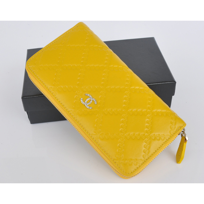 2014 Chanel Matelasse Zip Around Wallet Embossed Leather A50097 Yellow