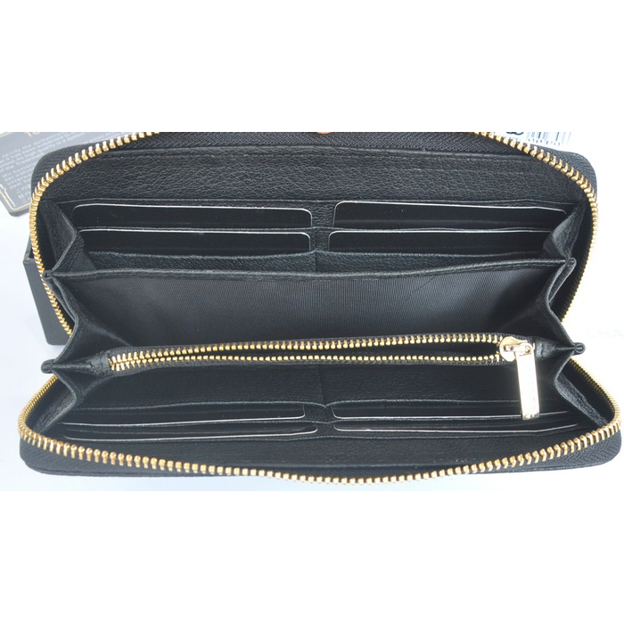 2014 Chanel Matelasse Zip Around Wallet Original Elephant pattern Leather C9559 Black
