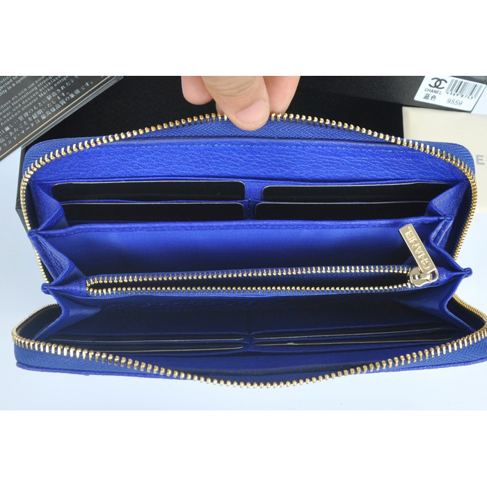 2014 Chanel Matelasse Zip Around Wallet Original Elephant pattern Leather C9559 Blue