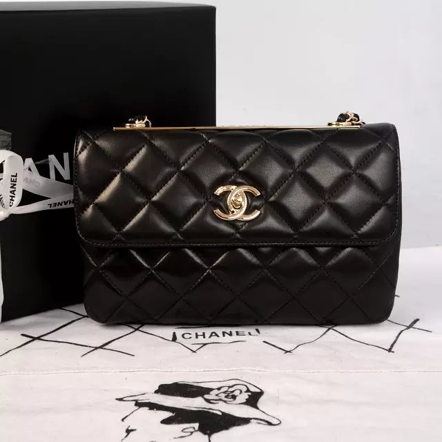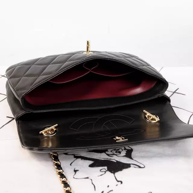 2014 Chanel Original Sheepskin Leather Flap Shoulder Bag A92235 Black