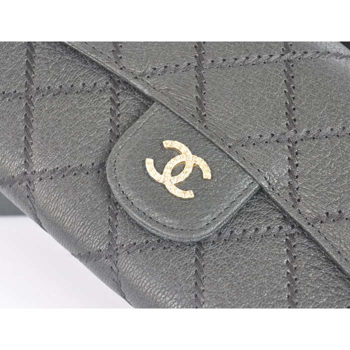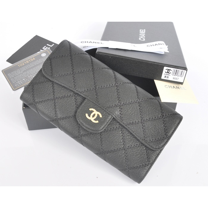 2014 Chanel Tri-Fold Wallet in Original Elephant pattern Leather C9557 Black