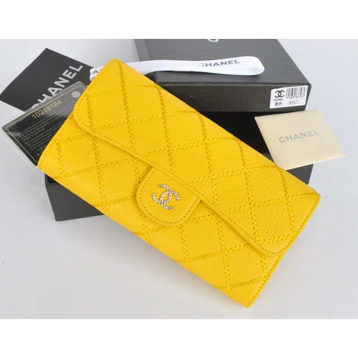 2014 Chanel Tri-Fold Wallet in Original Elephant pattern Leather C9557 Yellow