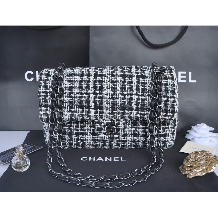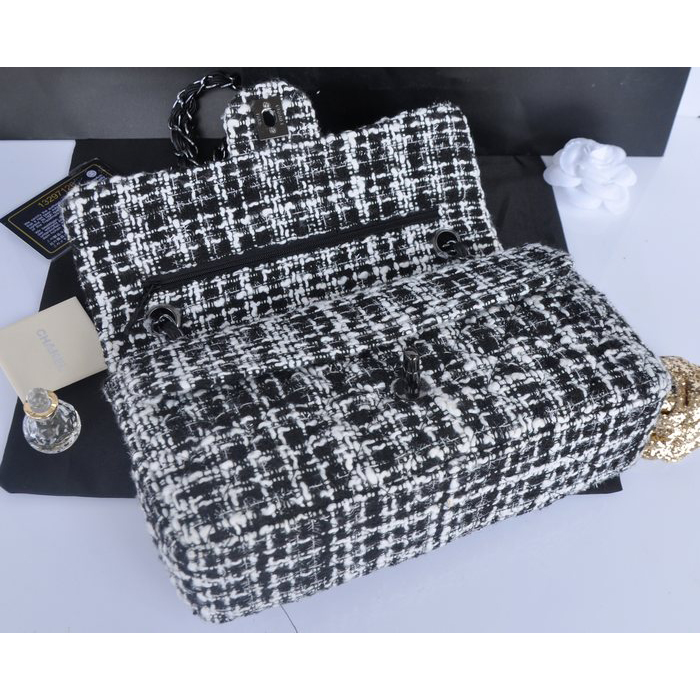 2014 Chanel Tweed Classic Flap Bag 1112 Black