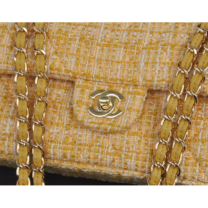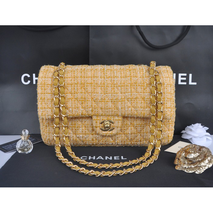 2014 Chanel Tweed Classic Flap Bag 1112 Gold