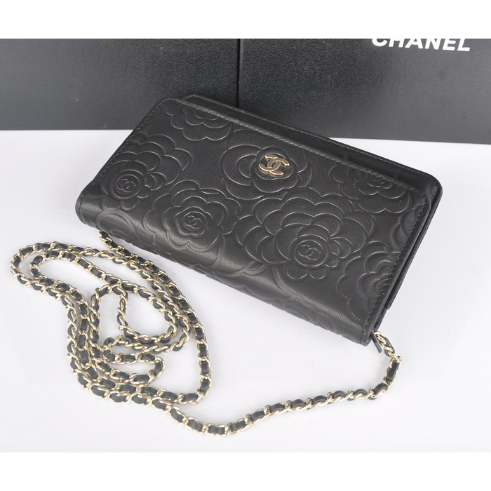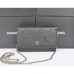 2014 Chanel WOC mini bags Original Camellia Leather A93301 Black
