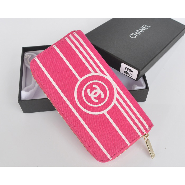 2014 Chanel Zip Around Canvas Wallet C226 Dark Rose