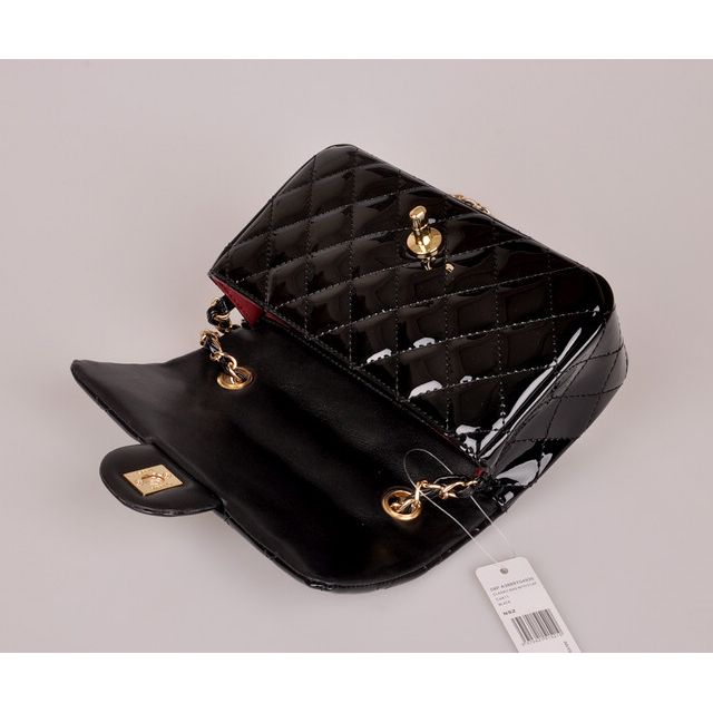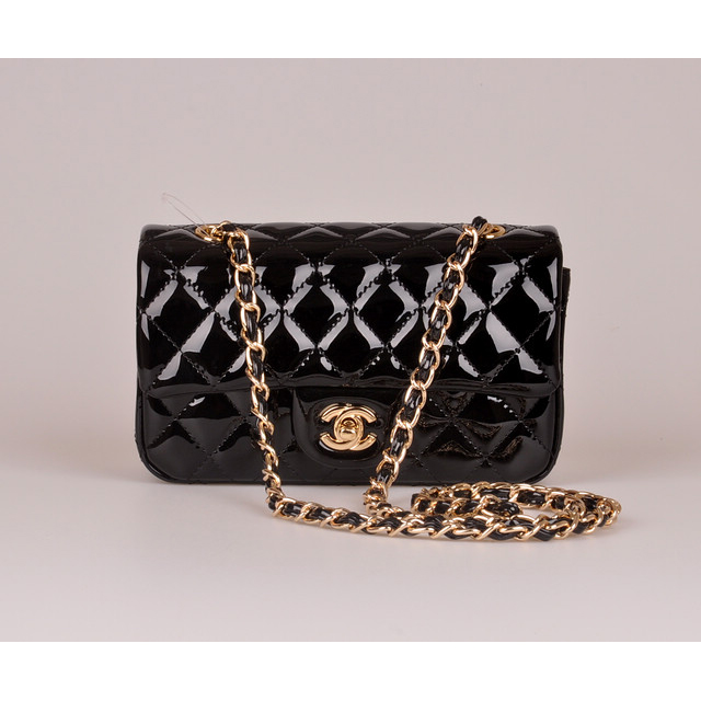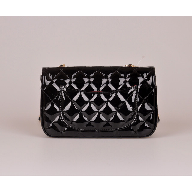 2014 Chanel mini Classic Flap Bag Black Patent Leather 1117 Gold