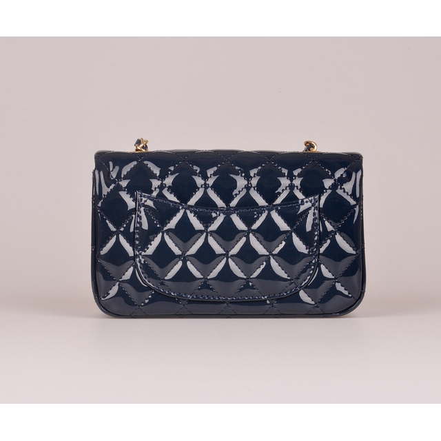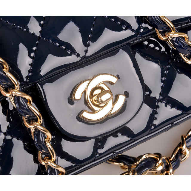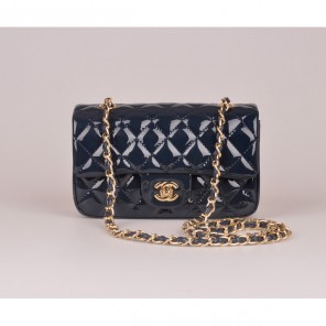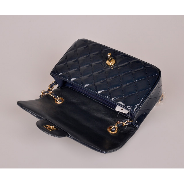 2014 Chanel mini Classic Flap Bag Blue Patent Leather 1117 Gold