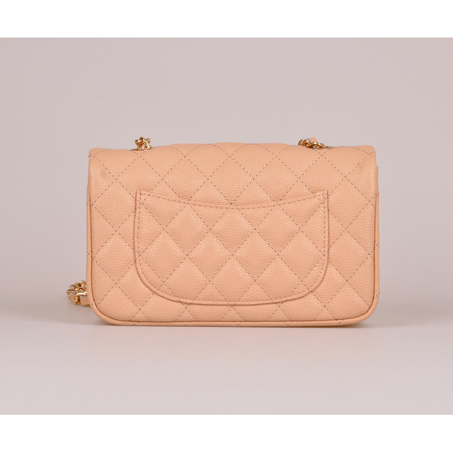 2014 Chanel mini Classic Flap Bag Caviar Leather 1117 Apricot in Gold
