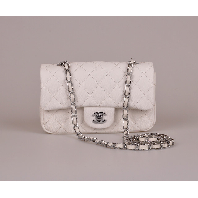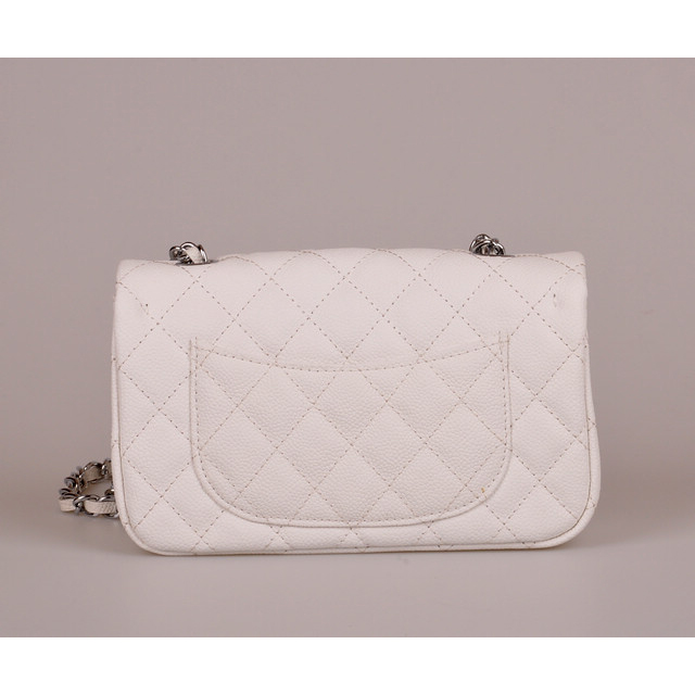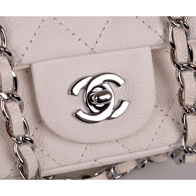 2014 Chanel mini Classic Flap Bag Caviar Leather 1117 White in Silver