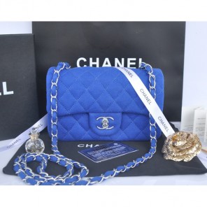 2014 Chanel mini Classic Flap Bag Denim Fabric CF69900 Blue