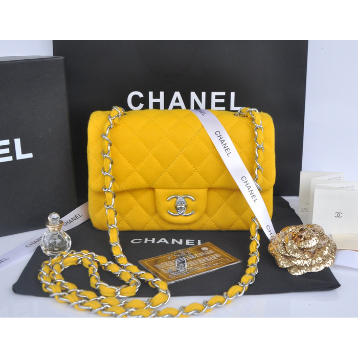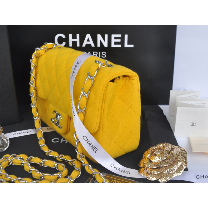2014 Chanel mini Classic Flap Bag Denim Fabric CF69900 Yellow