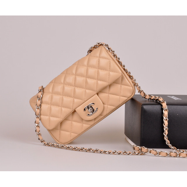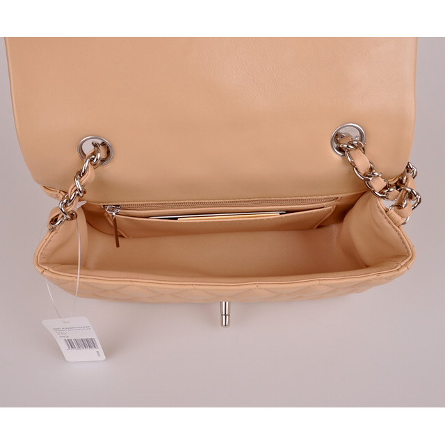 2014 Chanel mini Classic Flap Bag Original Apricot Sheekskin leather 1117 Silver