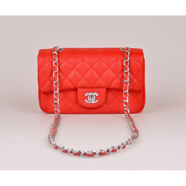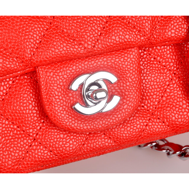 2014 Chanel mini Classic Flap Bag Red Caviar Leather 1117 Silver