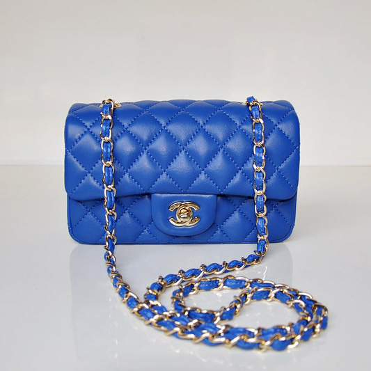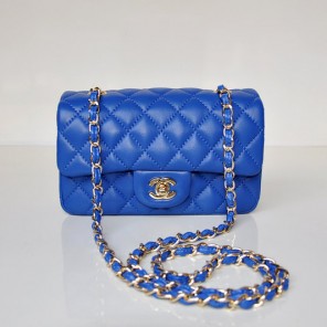 2014 Chanel mini Classic Flap Bag Sheekskin leather 1117 Blue in Gold