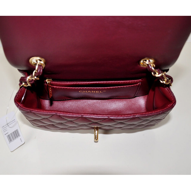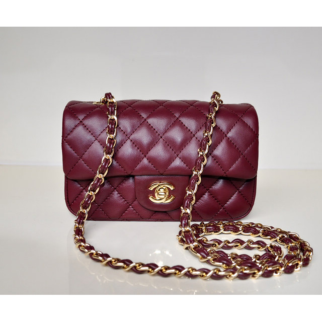 2014 Chanel mini Classic Flap Bag Sheekskin leather 1117 Claret in Gold