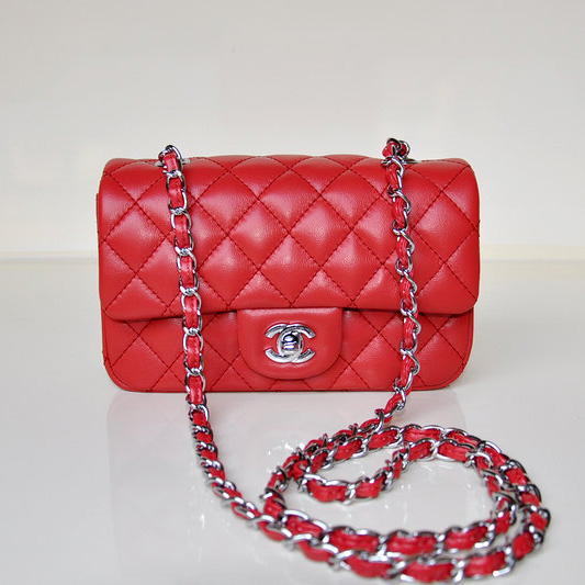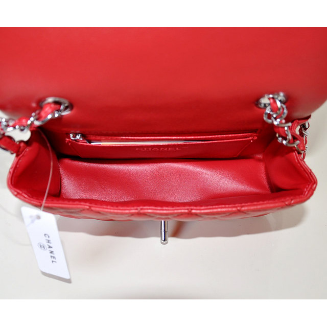 2014 Chanel mini Classic Flap Bag Sheekskin leather 1117 Red in Silver