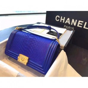 2015 Boy Chanel Flap Shoulder Bag Python Leather A66095 Blue with Gold