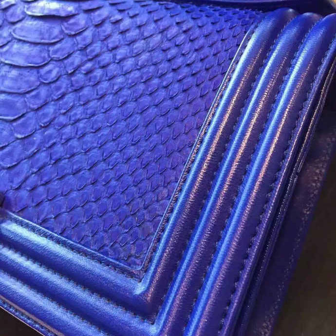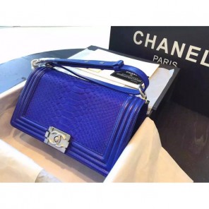 2015 Boy Chanel Flap Shoulder Bag Python Leather A66095 Blue with Silver