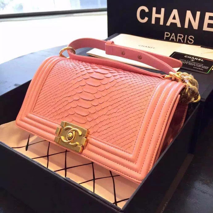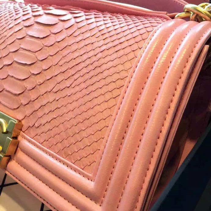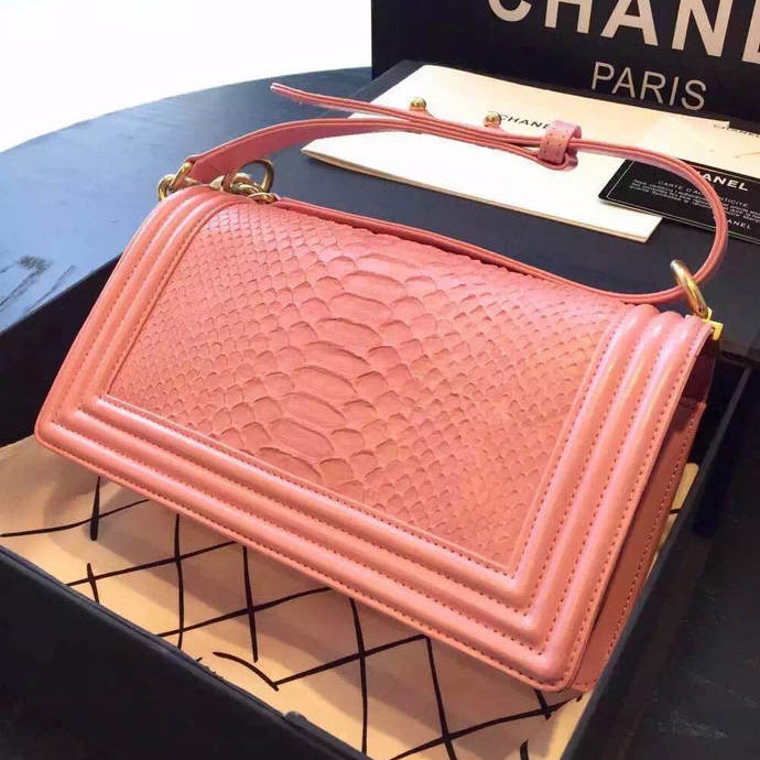 2015 Boy Chanel Flap Shoulder Bag Python Leather A66095 Pink with Gold