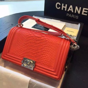 2015 Boy Chanel Flap Shoulder Bag Python Leather A66095 Red with Silver