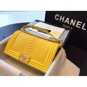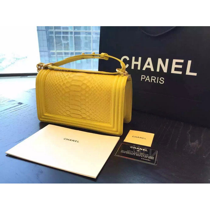 2015 Boy Chanel Flap Shoulder Bag Python Leather A66095 Yellow with Gold