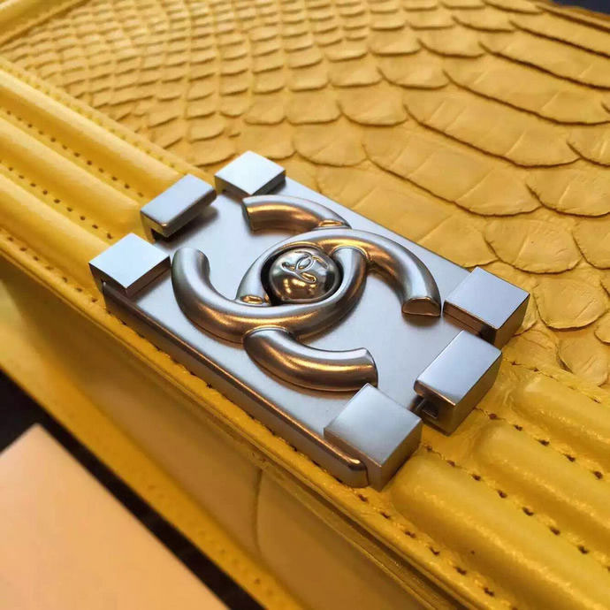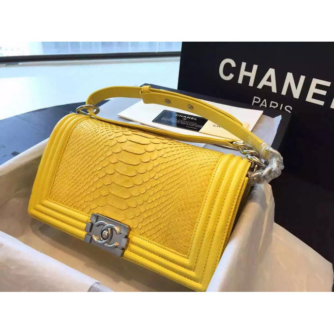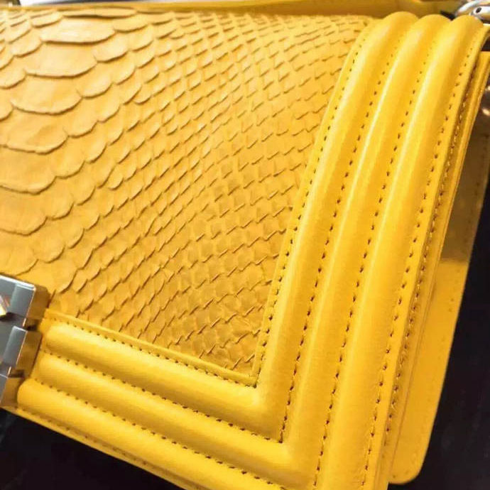 2015 Boy Chanel Flap Shoulder Bag Python Leather A66095 Yellow with Silver
