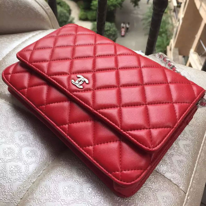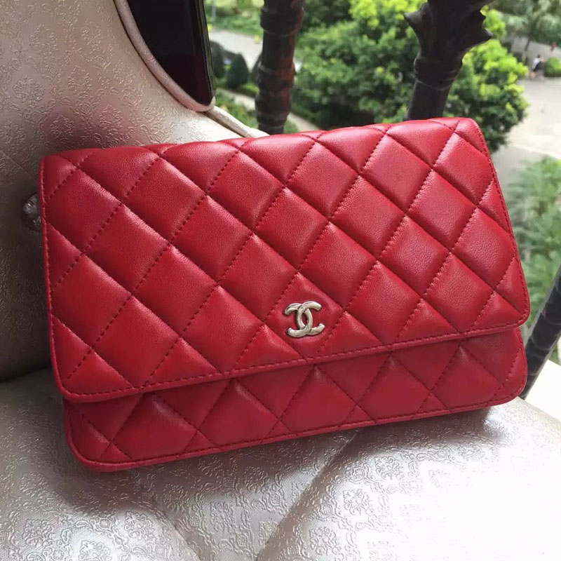2015 Chanel WOC mini Flap Bag Red Original Sheepskin leather A33808