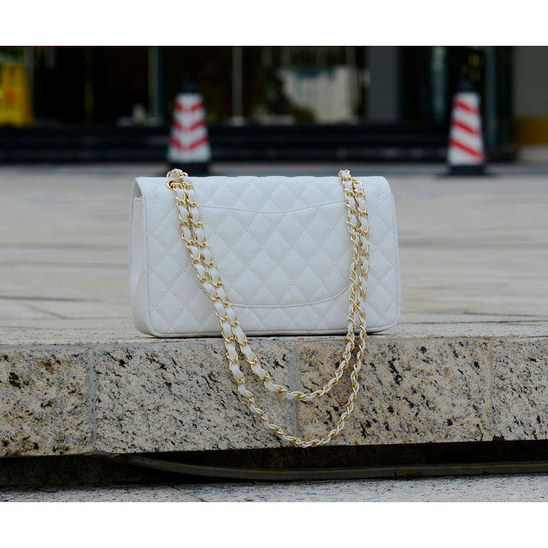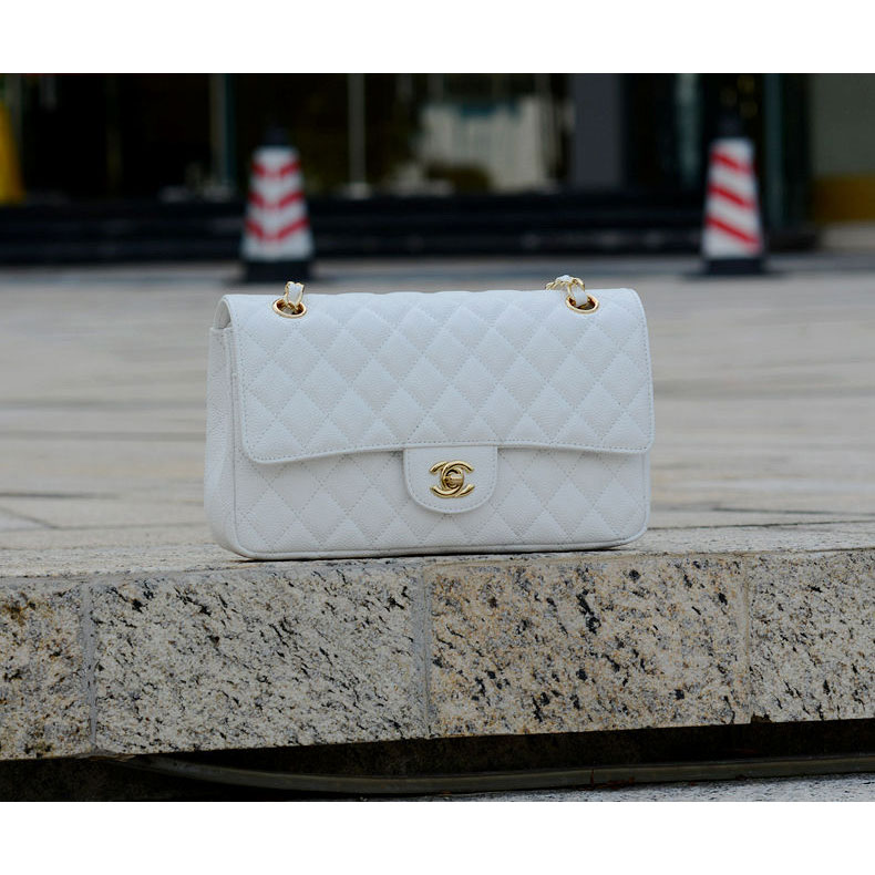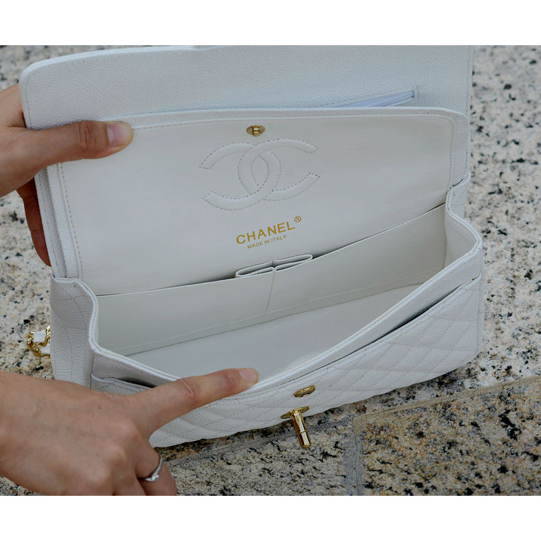 2015 Chanel 1112 Flap Bag Caviar Leather White with Gold
