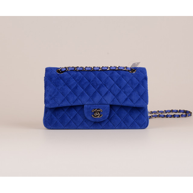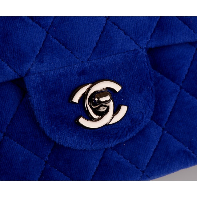 2015 Chanel 2.55 Series Classic Flap Bag Velvet 1112 Blue