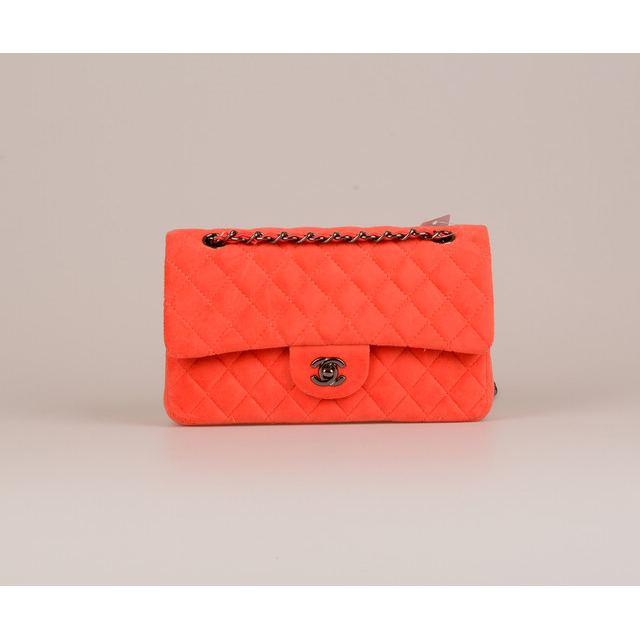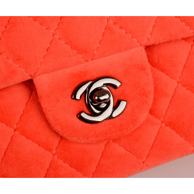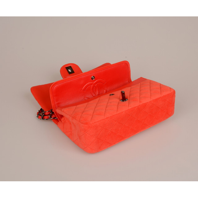 2015 Chanel 2.55 Series Classic Flap Bag Velvet 1112 Orange
