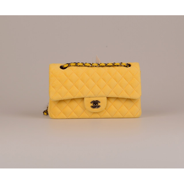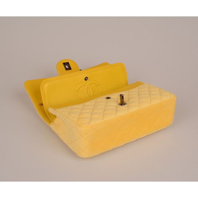 2015 Chanel 2.55 Series Classic Flap Bag Velvet 1112 Yellow