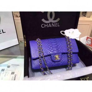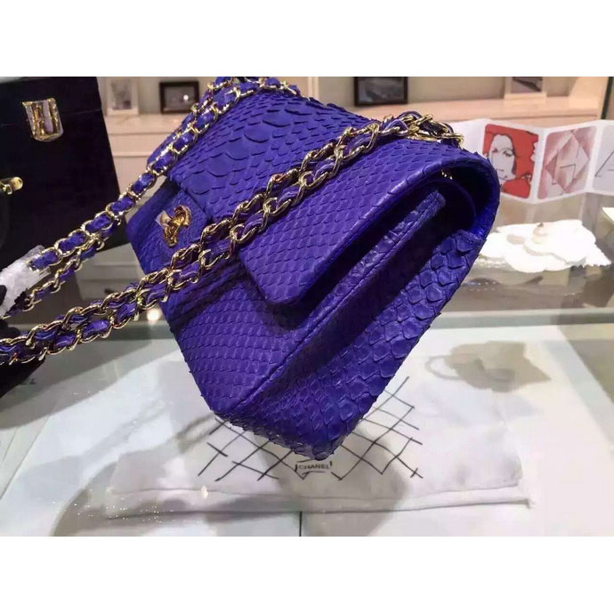 2015 Chanel 2.55 Series Flap Bag Python Leather A1112 Blue with Gold