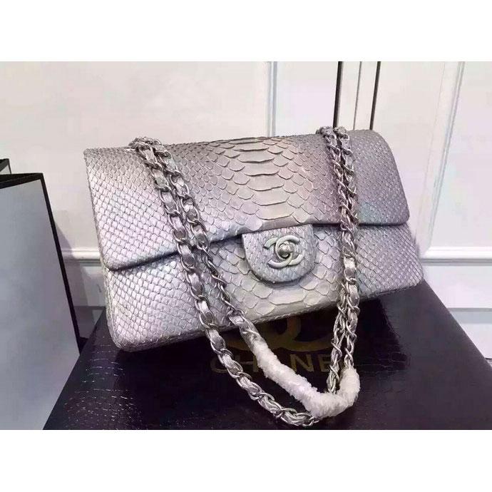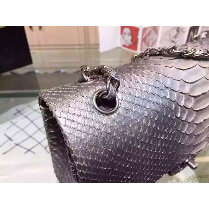 2015 Chanel 2.55 Series Flap Bag Python Leather A1112 GrayWhite with Silver