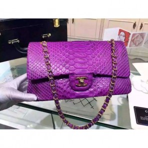 2015 Chanel 2.55 Series Flap Bag Python Leather A1112 Purple with Gold