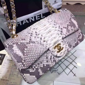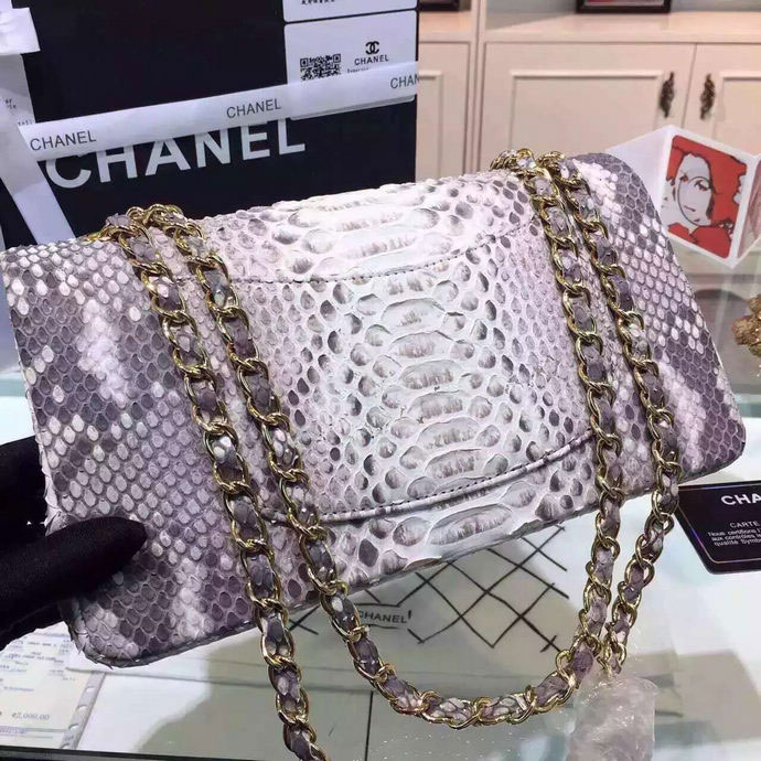 2015 Chanel 2.55 Series Flap Bag Python Leather A1112 White with Gold