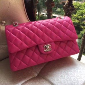 2015 Chanel A1112 Flap Bag Original Sheepskin Leather Rose with Silver