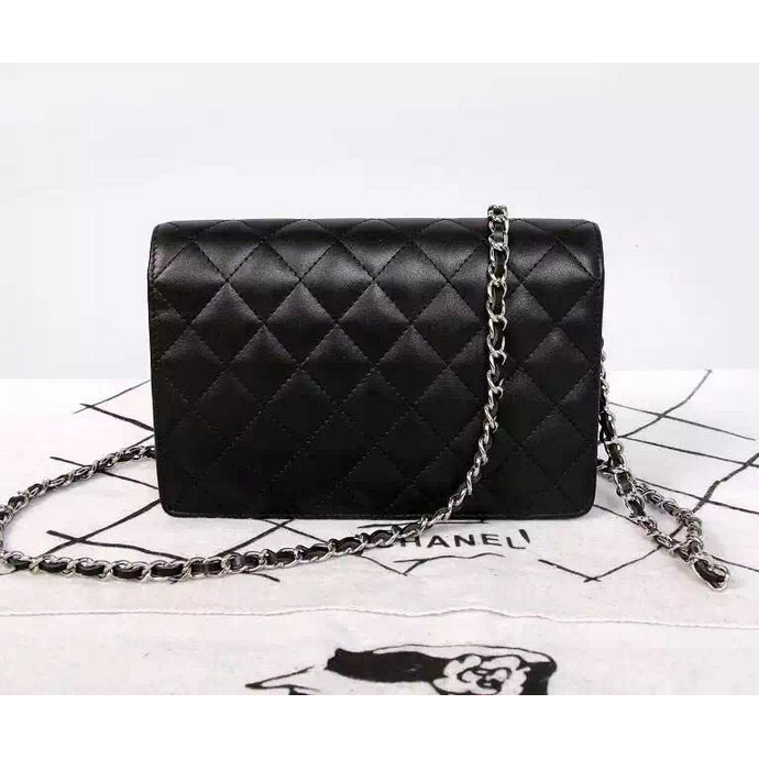 2015 Chanel A33814 Black Original Leather Mini Flap Bag Silver
