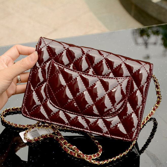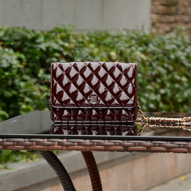 2015 Chanel A33814 Claret Patent Leather mini Flap Bag Gold