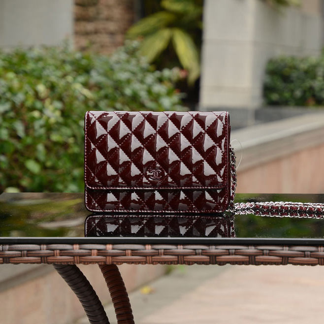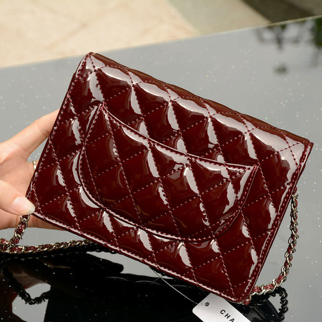 2015 Chanel A33814 Claret Patent Leather mini Flap Bag Silver