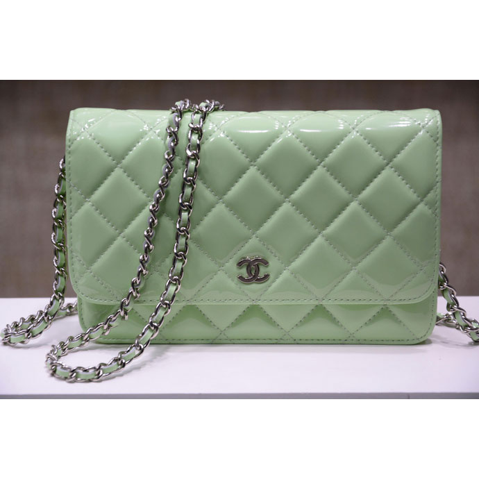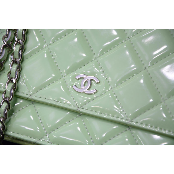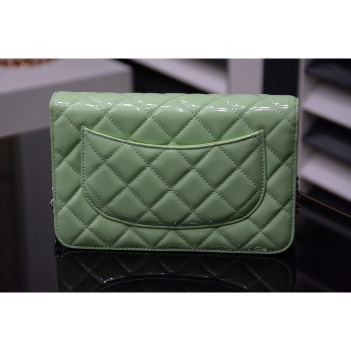 2015 Chanel A33814 Green Original Patent Leather mini Flap Bag Silver