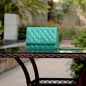 2015 Chanel A33814 Light Green Patent Leather mini Flap Bag Gold