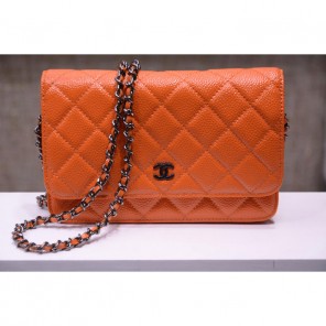 2015 Chanel A33814 Orange Light Caviar Leather mini Flap Bag Ancient silver