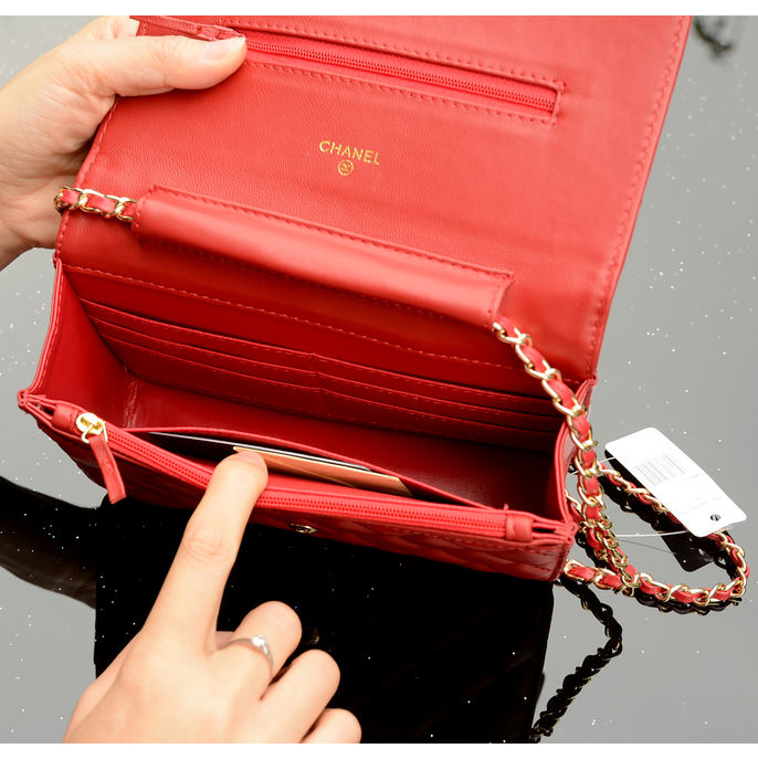 2015 Chanel A33814 Sheepskin Leather Flap Bag in Red with Gold