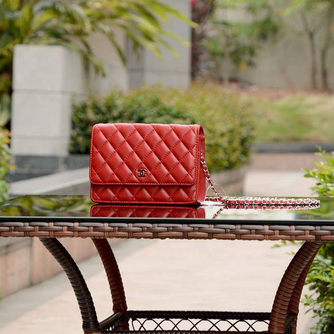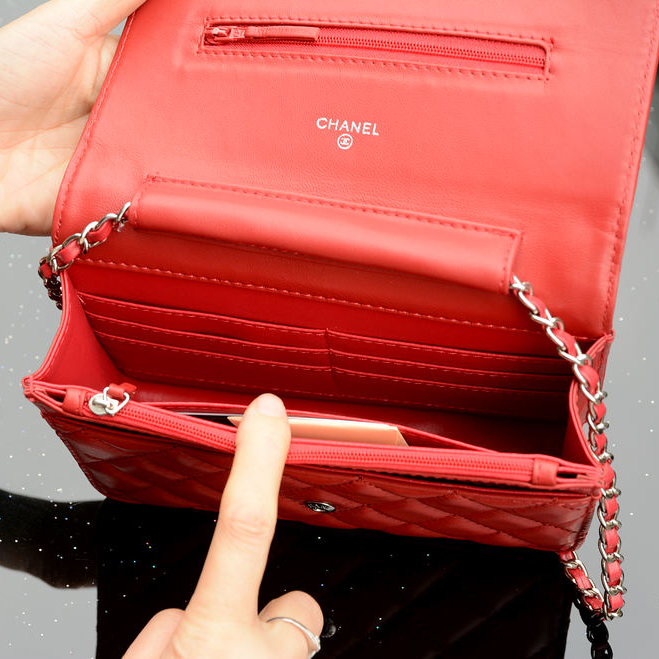 2015 Chanel A33814 Sheepskin Leather Flap Bag in Red with Silver