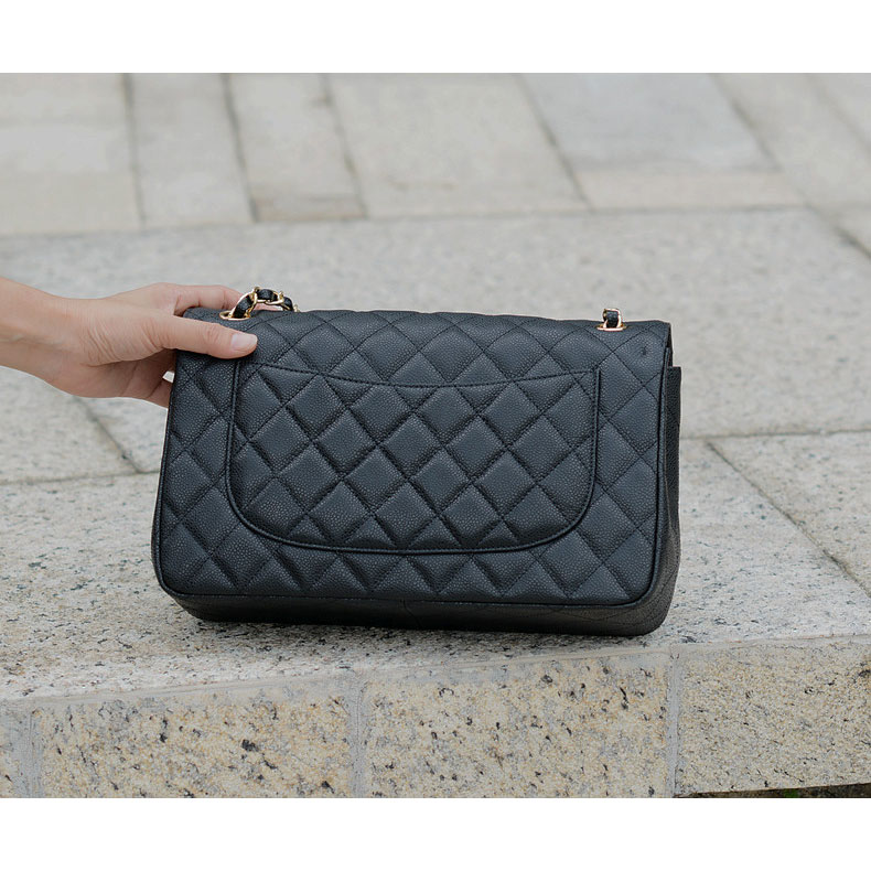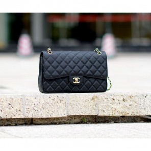 2015 Chanel A58600 Caviar leather Classic Flap Bag in Black with Gold