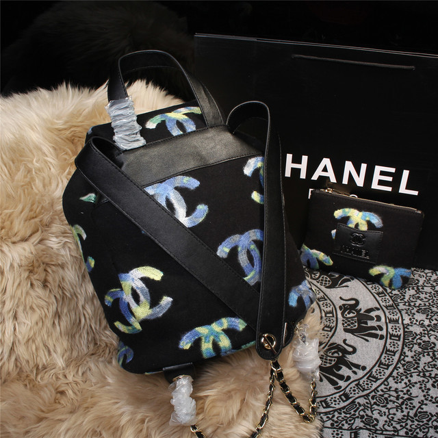 2015 Chanel Backpack Villus Leather A68030 Black