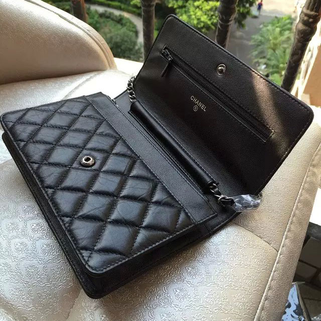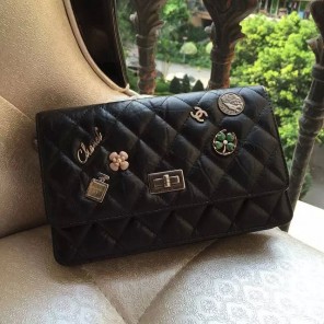 2015 Chanel Badge Bag Flap Shoulder Bag Original Leather A80442 Black